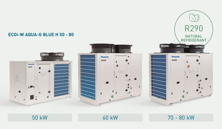Panasonic ofrece una gama única de capacidades disponibles con el refrigerante R290 y tecnología de compresor scroll, con 4 tamaños de 50 - 80 kW. Además, la gama puede aumentar la capacidad hasta 480 (kW) mediante la conexión de hasta 6 unidades en cascada. Las unidades son totalmente personalizables con varias opciones de configuración y estarán disponibles en el mercado en 2024.